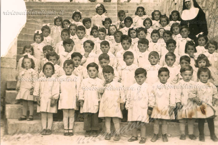Immagine di struggente tenerezza, che raggruppa i bimbi presumibilmente delle classi 1945, '46 e '47. |