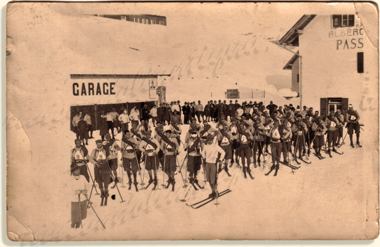 Altri tempi !!. I componenti della squadra agonistica erano anche militari, e non potevano trascurare l'addestramento relativo. Nella "slide show" che segue mostriamo alcuni aspetti tipici della vita che un componente della squadra agonistica conduceva, senza trascurare l'attività di servizio, che parimenti veniva esercitata. Luigino, assegnato alla Legione di Milano fu operativo alla frontiera italo-svizzera in Valtellina, rispettivamente a Sernio, Tirano, Madonna di Tirano, Gordona e S.Martino Val Masino. Tutte zone in alta quota, e che sacrifici per raggiungere poi le località ove si svolgevano le gare. |
